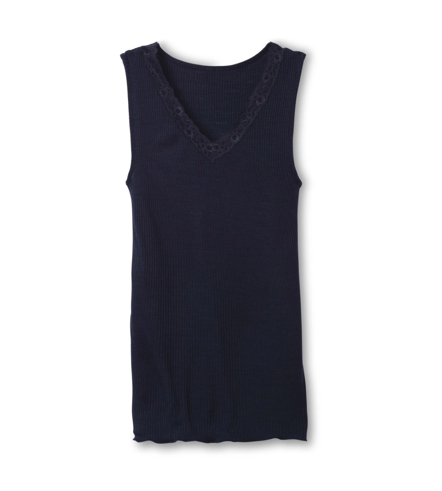 Tank top Calida en Laine et Soie et bretelles larges parées de dentelles. Ce top soyeux se pare de dentelle fleurie au niveau du décolleté. Doux, délicat, chaud et thermorégulateur, ce mélange de fibres naturelles vous apporte les précieuses qualités de la nature. Ce top se porte en toute saison, puisqu’il garde la chaleur sur la peau en hiver, mais reste aussi frais et sec en été.