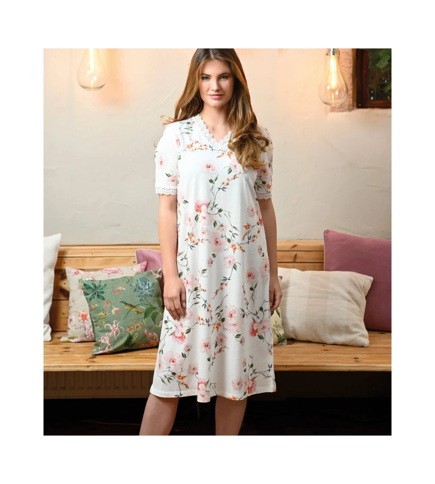 - Chemise de nuit romantique à motif fleuri, frais et léger.