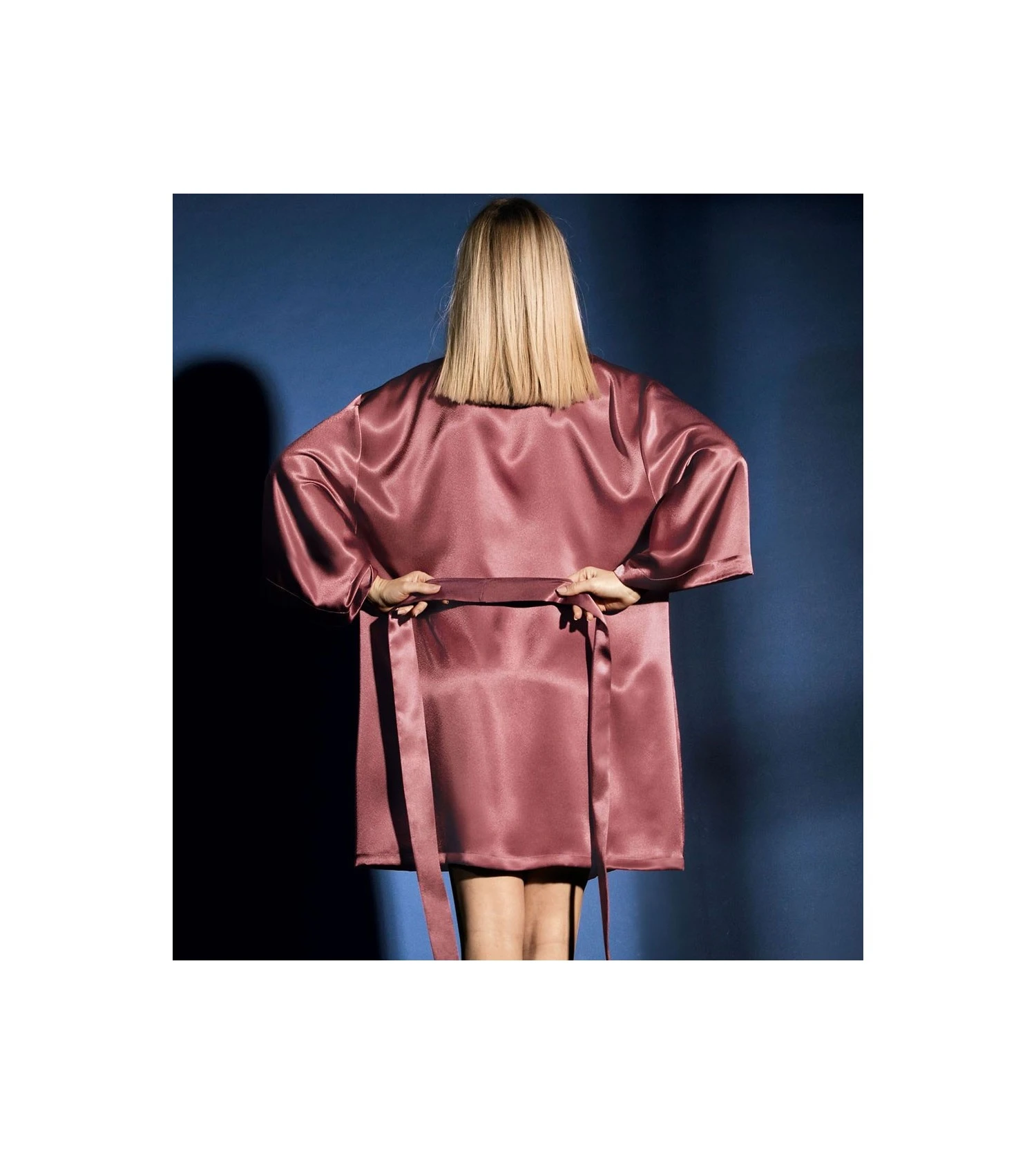 D’une forme kimono aux manches amples, ce déshabillé en satin à la coupe ample est ceinturé à la taille. Vous serez séduite par son enveloppante douceur.