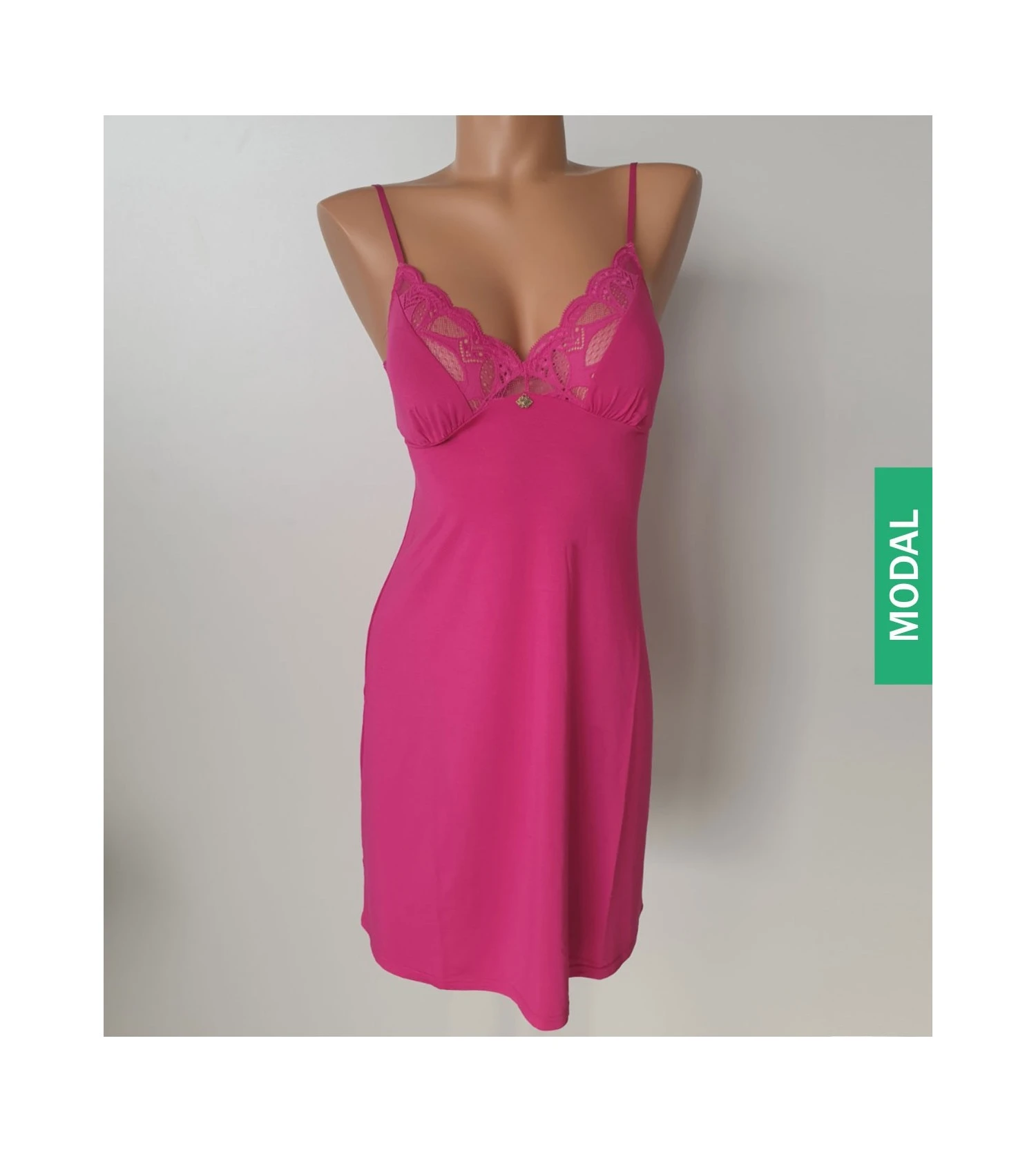 - Nuisette avec fines bretelles en Modal et dentelle florale plumetis.