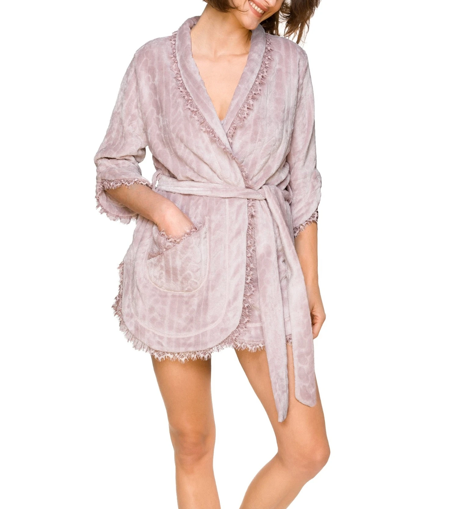 - Déshabillé tout doux décoré de dentelle.