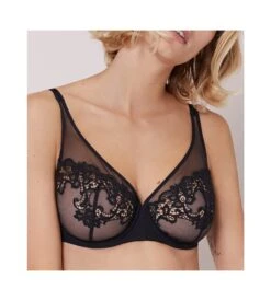 - Soutien-gorge à bonnets transparents et brodé de fleurs.