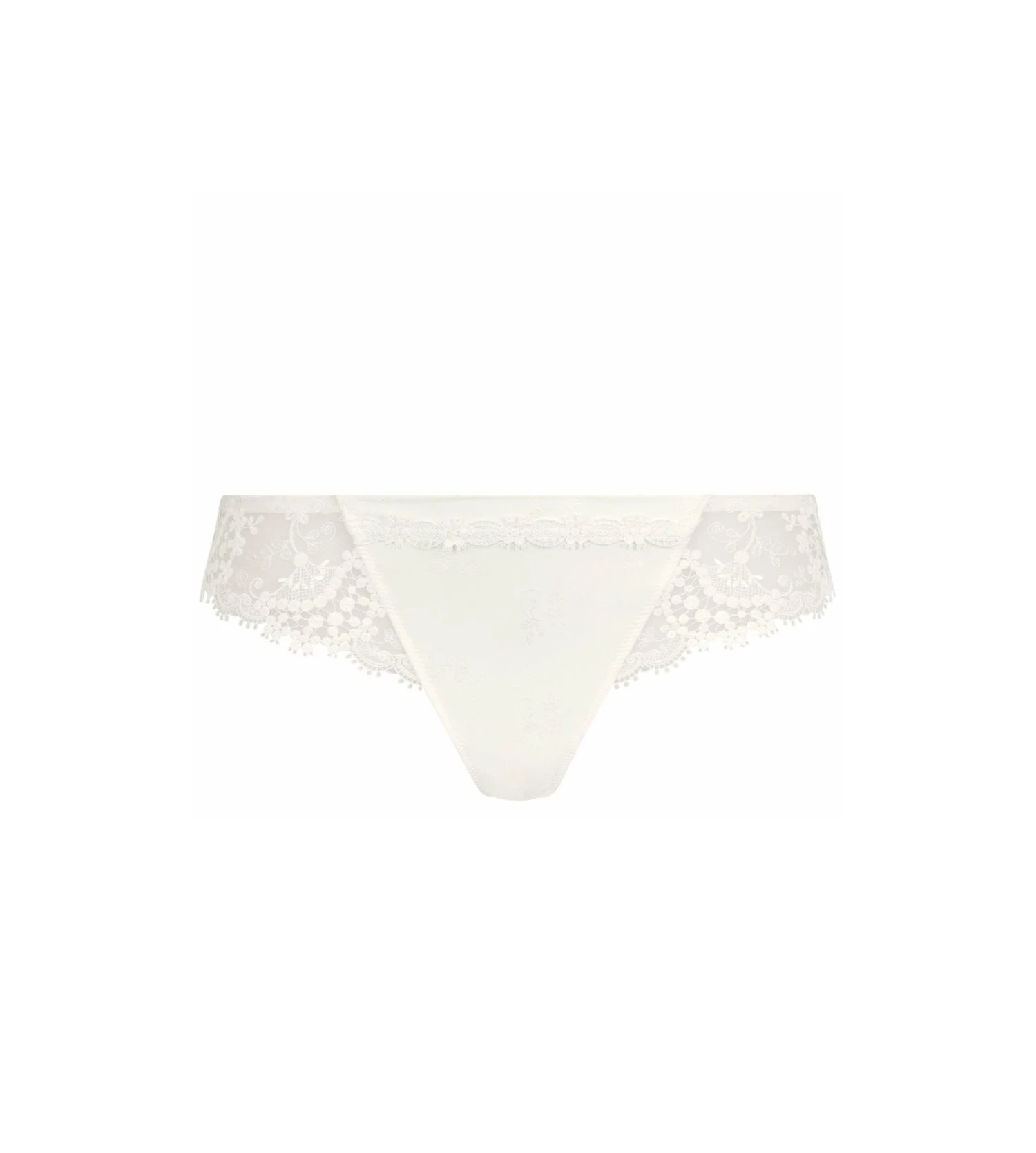 Tanga en satin et tulle brodé de la ligne Wish de la marque de lingerie Simone Pérèle.