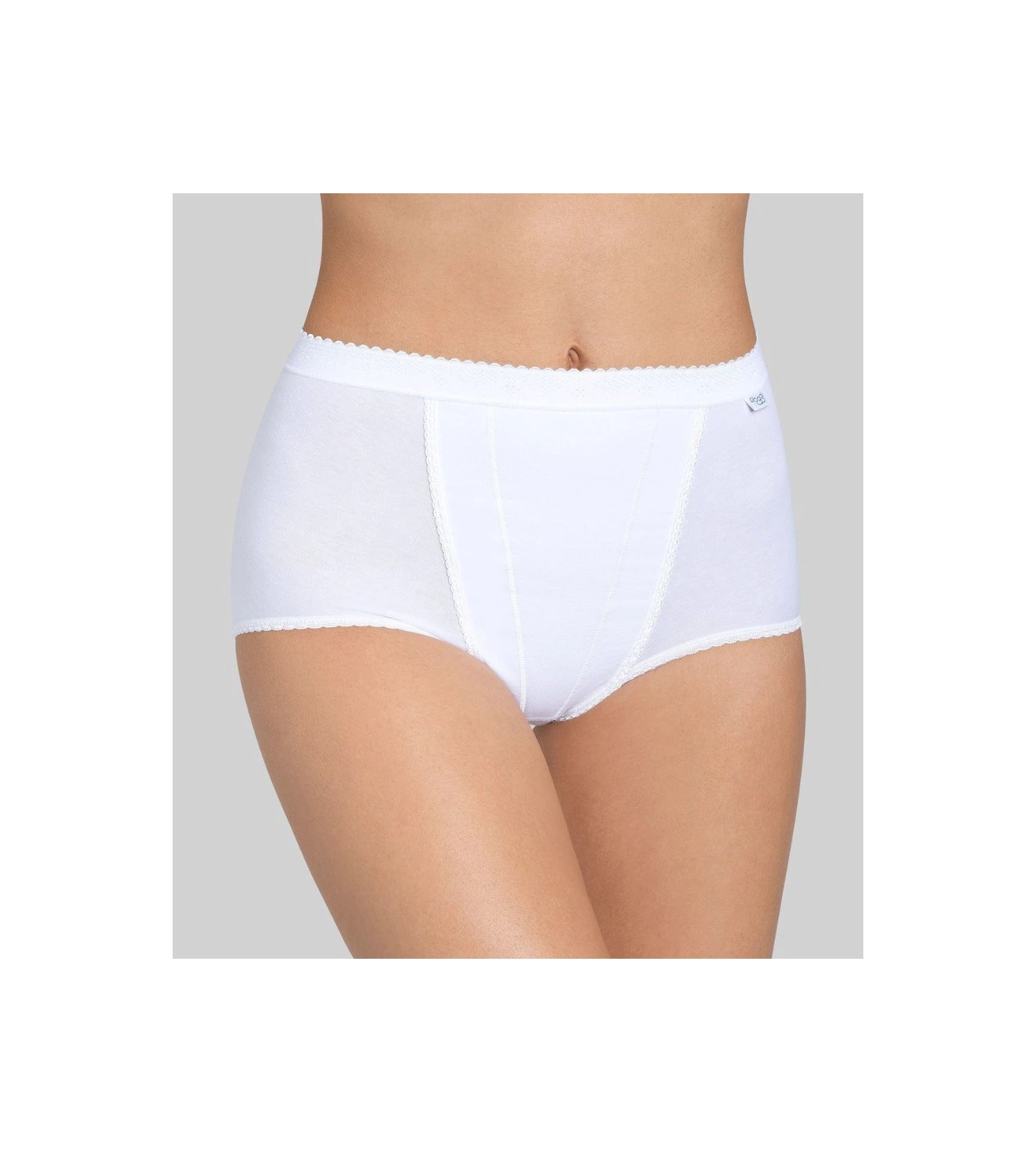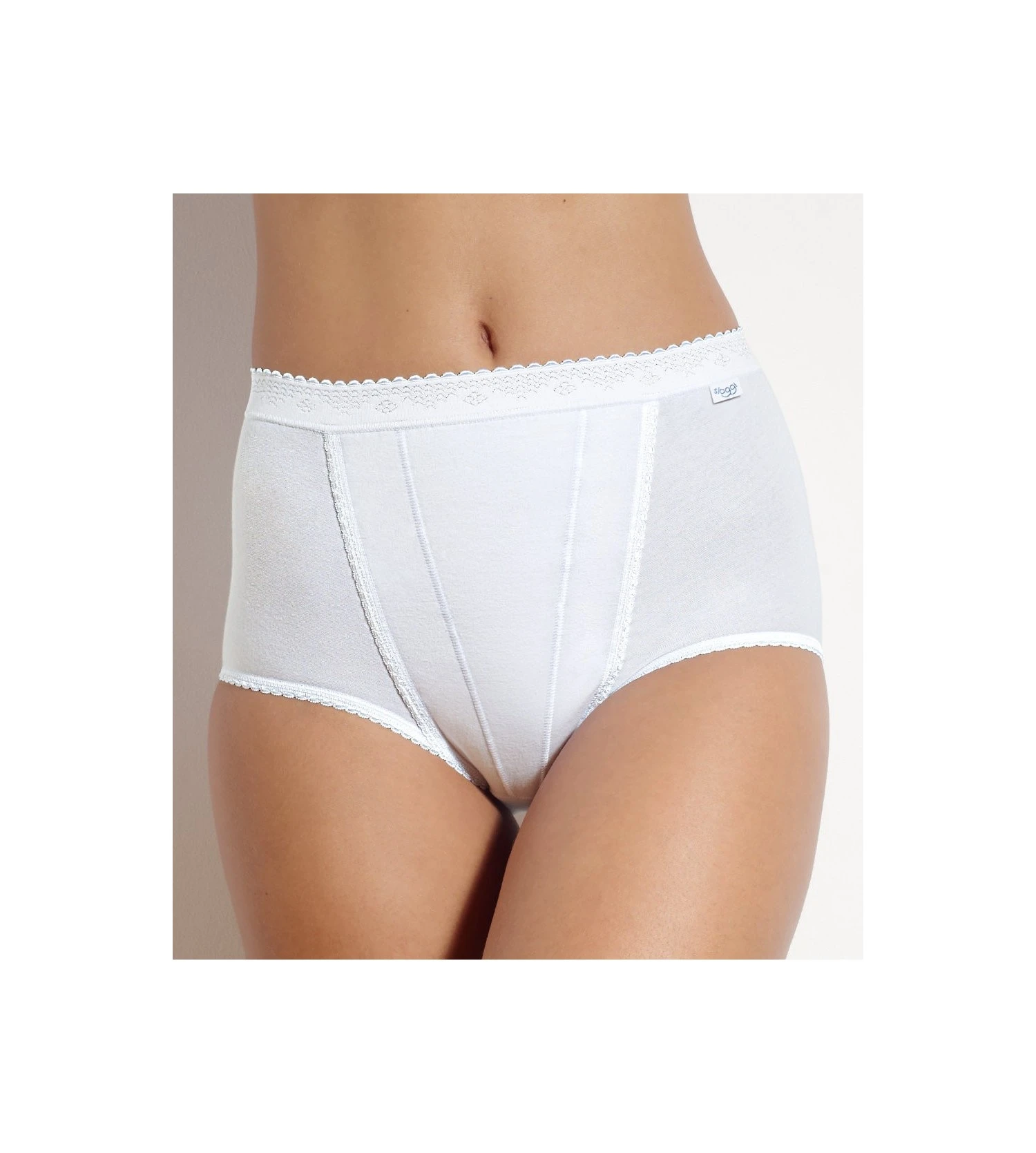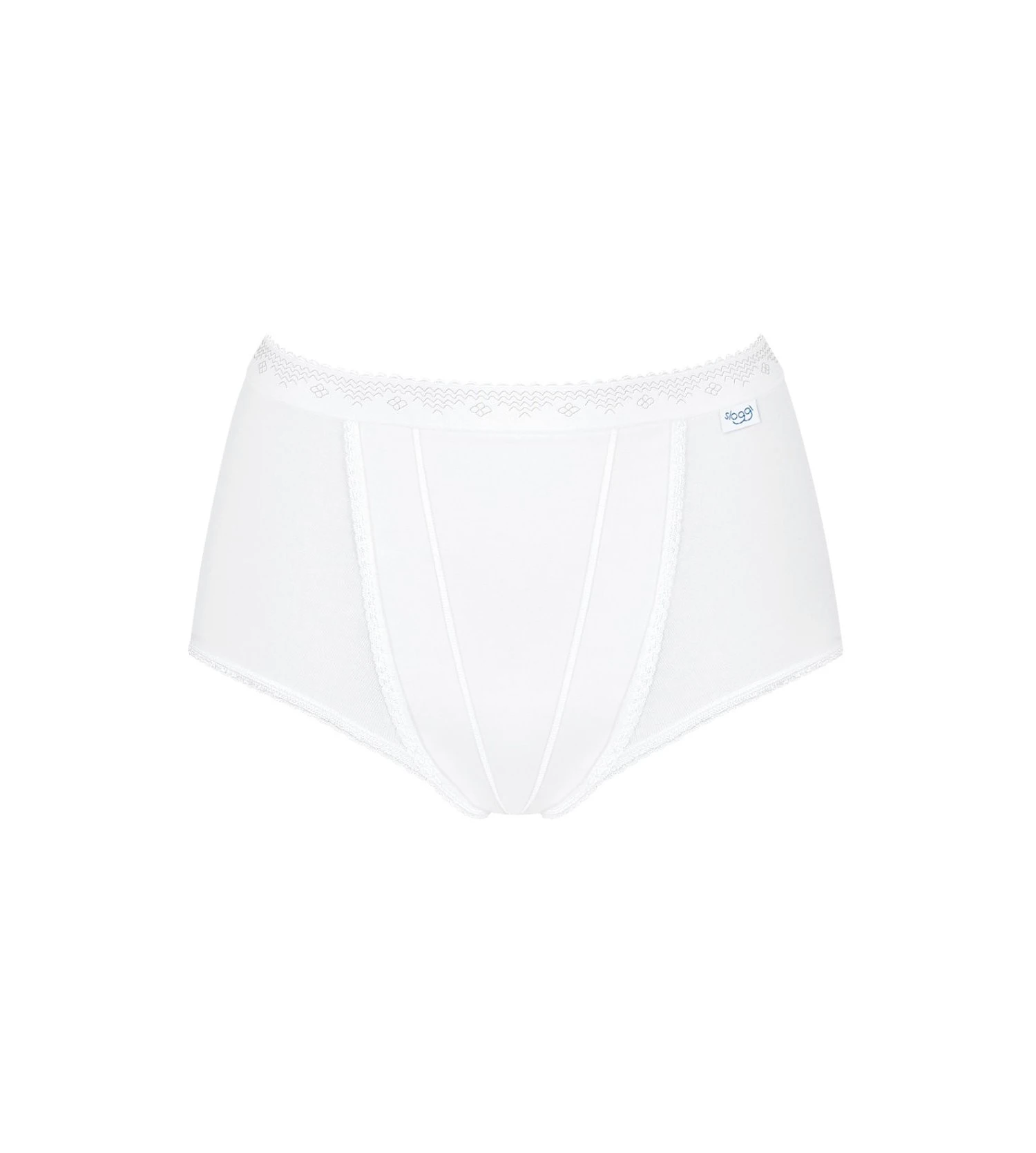 Slip ventre plat Sloggi à taille haute et côtés larges, idéal pour affiner la taille et sculpter la silhouette sous les vêtements moulants. Ultra confortable, avec son coton premium hypoallergénique, ce slip maxi offre une tenue optimale grâce à son plastron renforcé et à sa large ceinture élastique en coton. Côté esthétique, cette culotte possède un joli design avec ses finitions bouclettes très féminines.