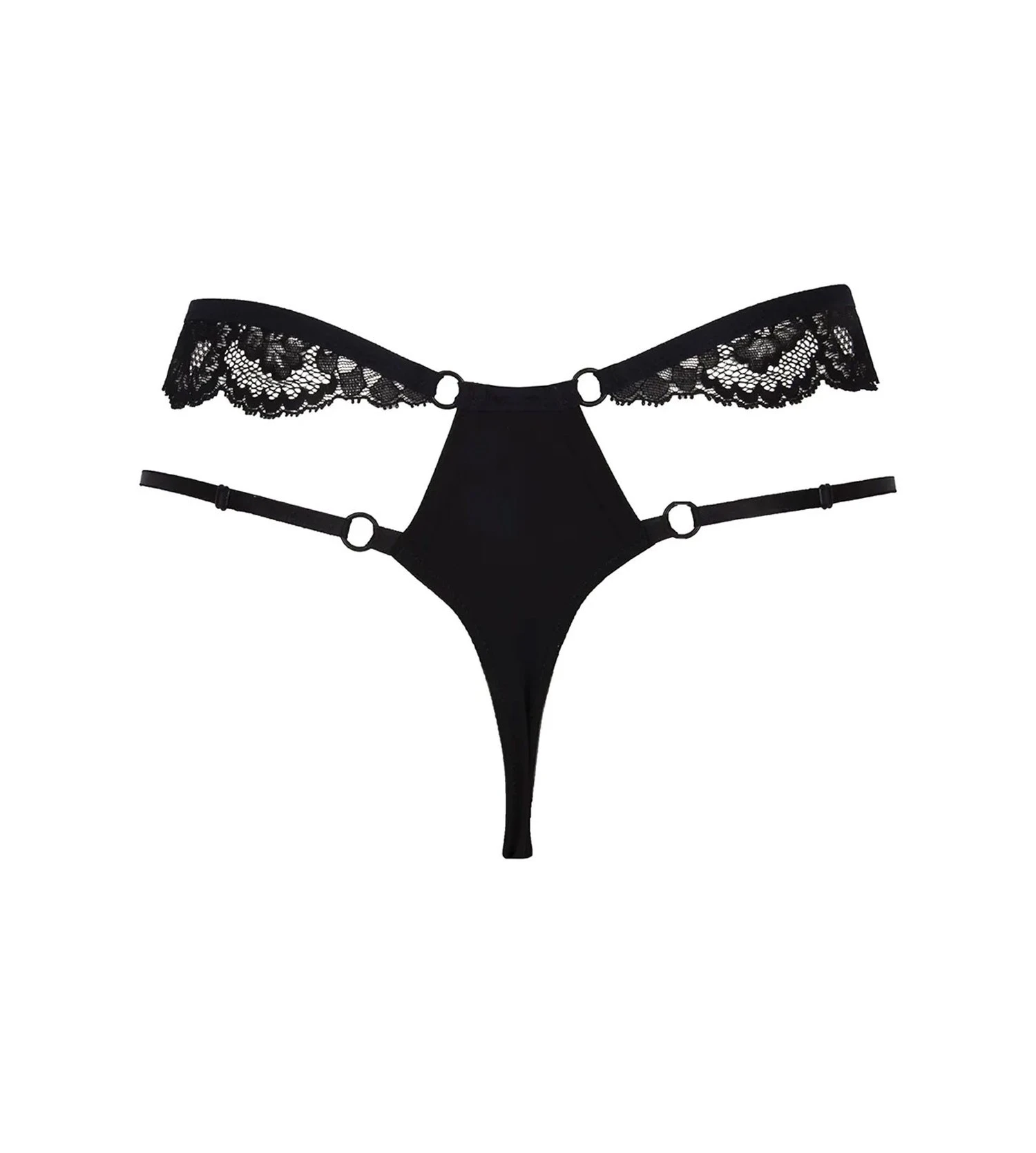 - Taille basse et échancré. String enrichi, terriblement sexy.